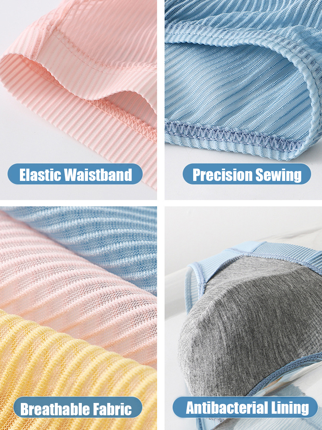 Material: The underwear is made of breathable fabric with a striped design. which gives it a semi-transparent look. enhancing both breathability and comfort.