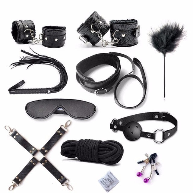 Regardless of where you want to start. this set is built to bring you the most pleasure. Each piece is adequate from quality vegan leather. nylon. and plush - all top-grade materials. It's a ten-piece set that's available in four colors. With all the items. there is no limit to what you can do. Use the wrist and ankle cuffs for some mild restraint play; break out the feather tickler if you have a partner that's very ticklish and you want to make things interesting.
