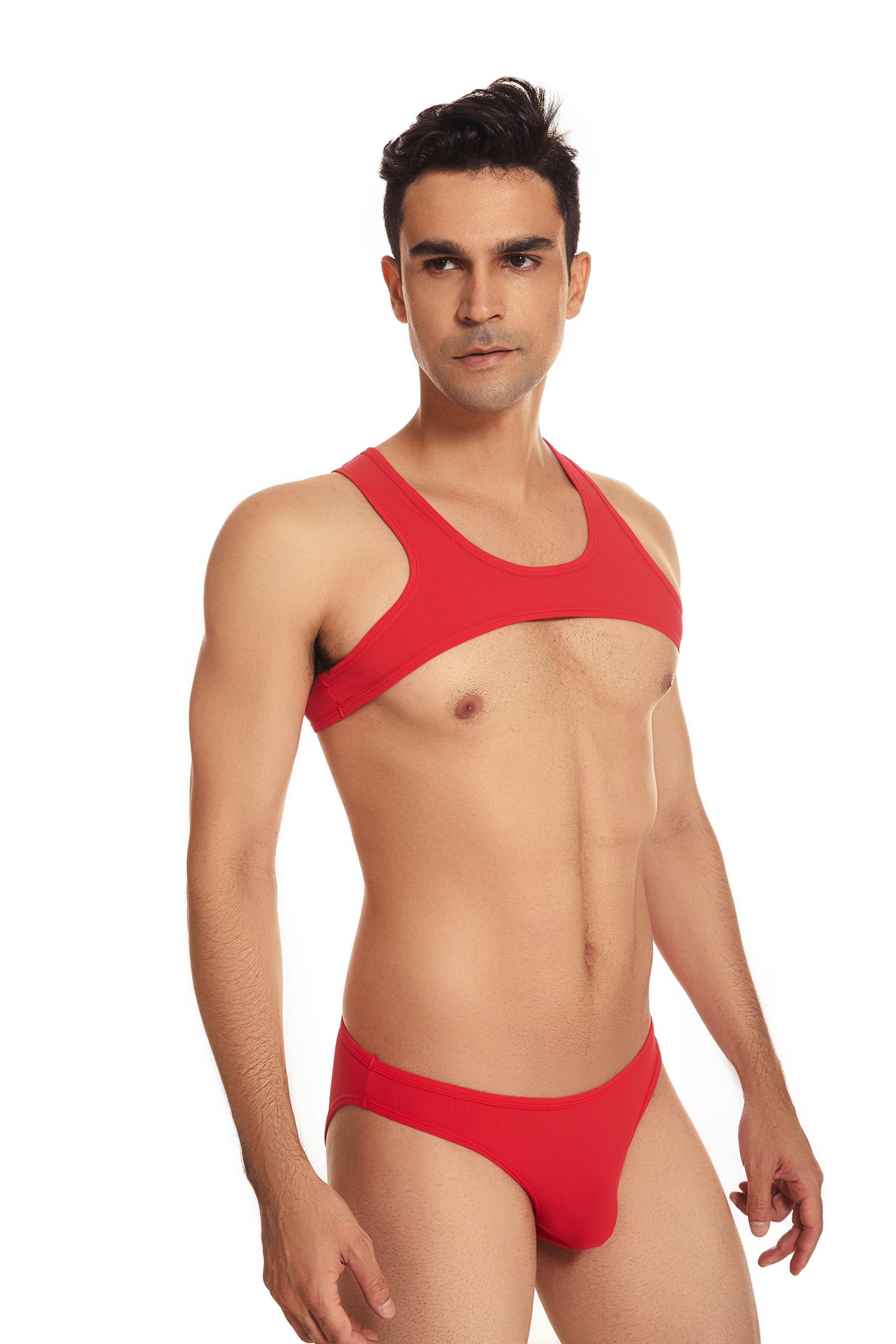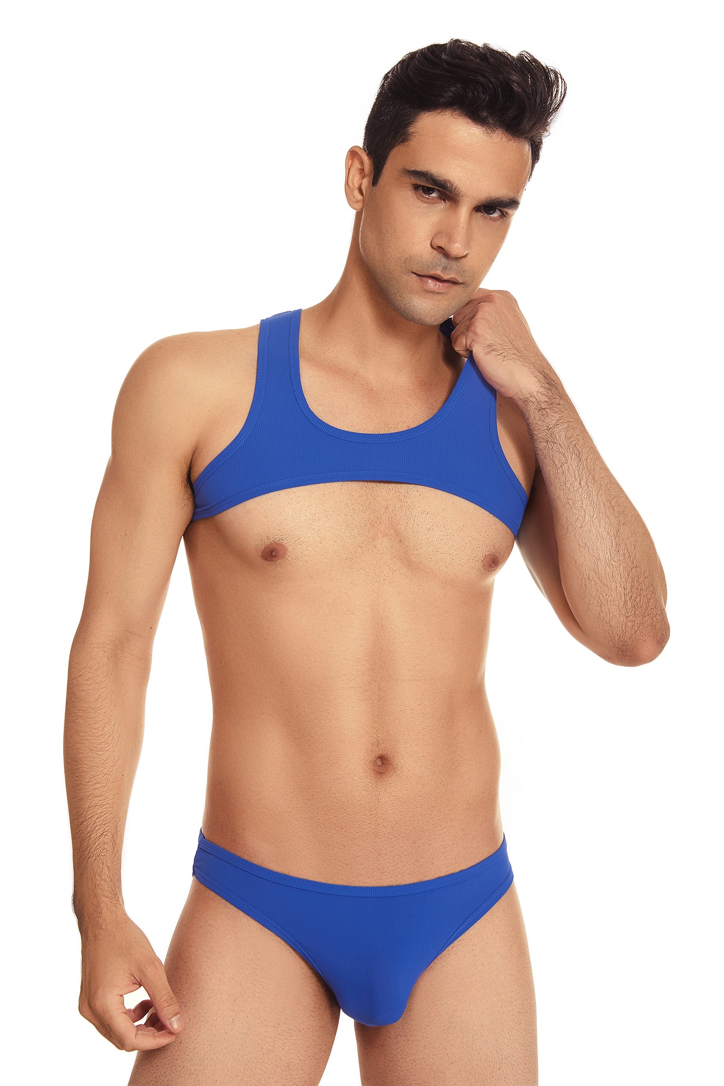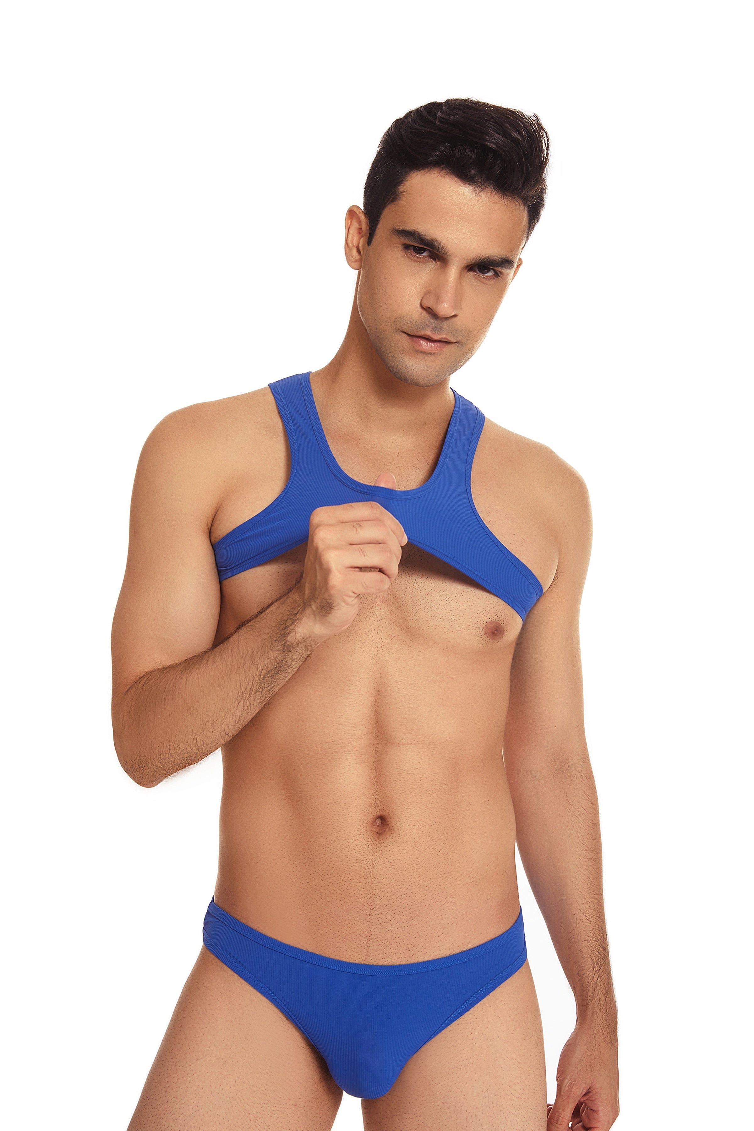 Get ready for your cover shot with this micro crop tank. It's light and flexible nylon blend will stretch to fit most sizes. and it's sexy ultra-high cut will show off even more skin. For guys who know exactly what they want.