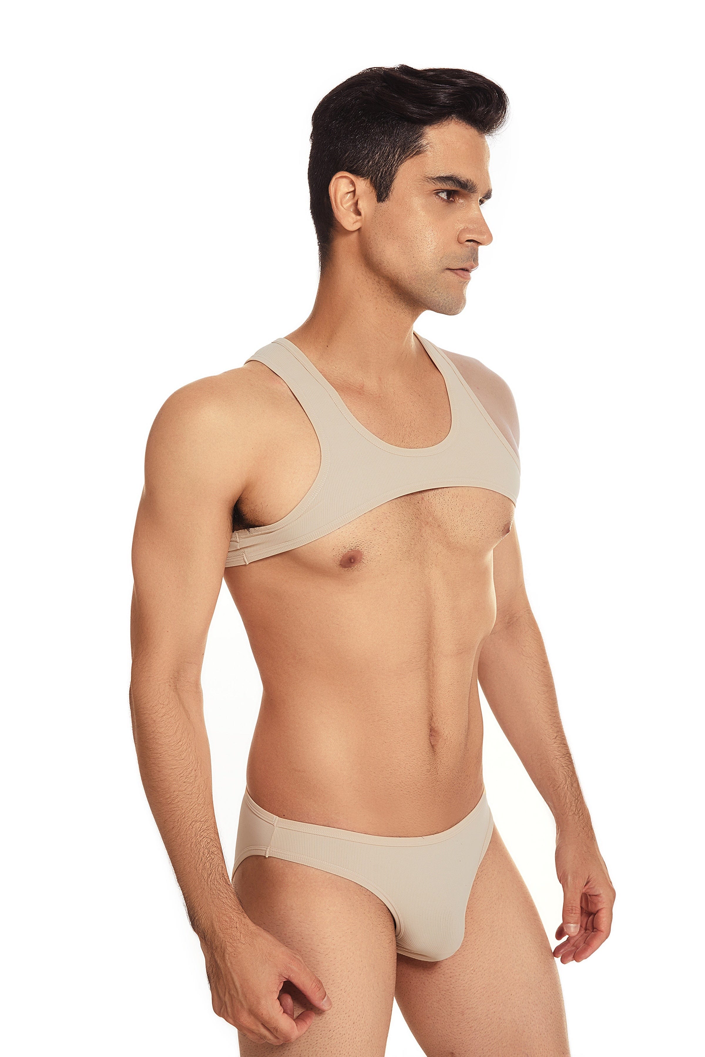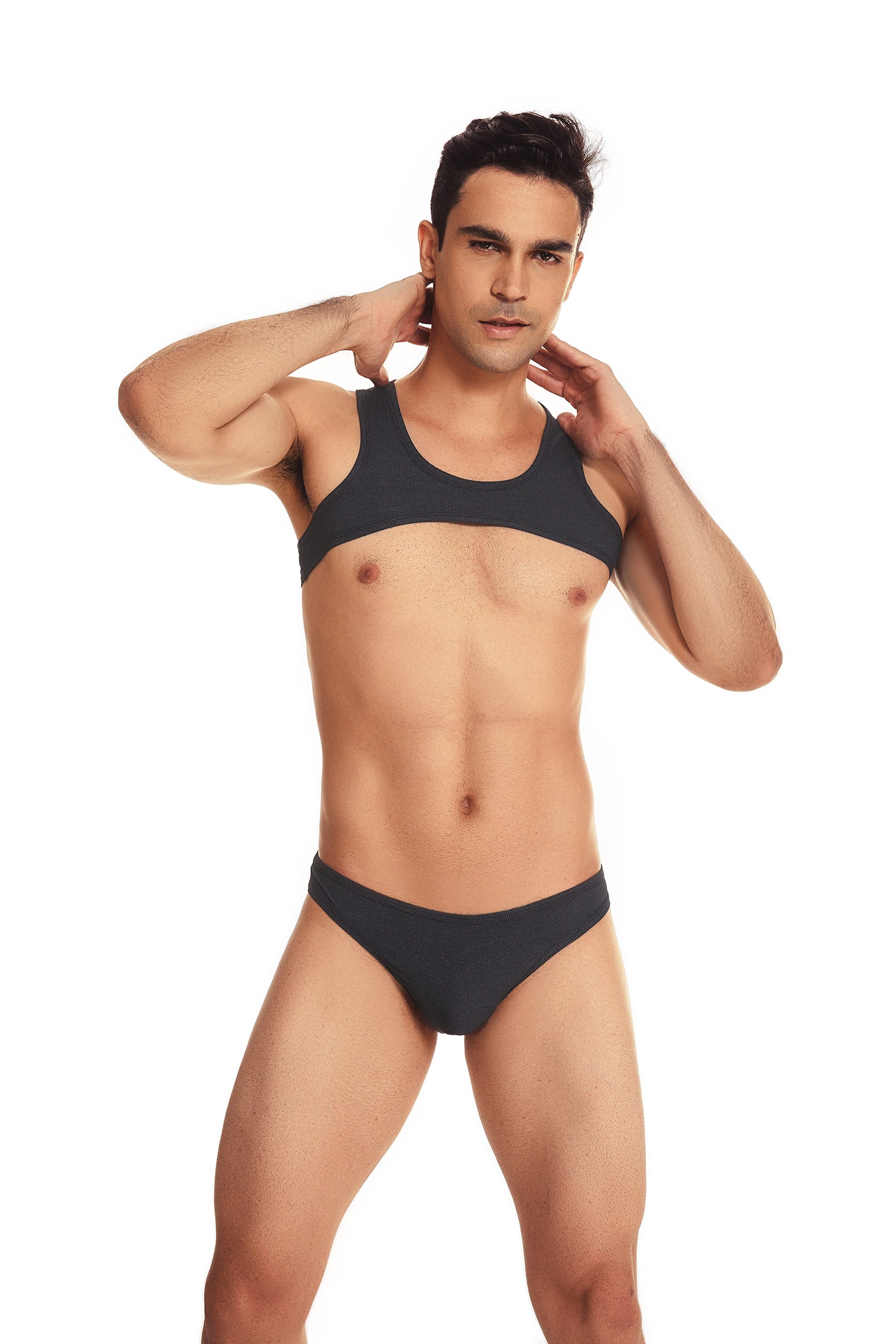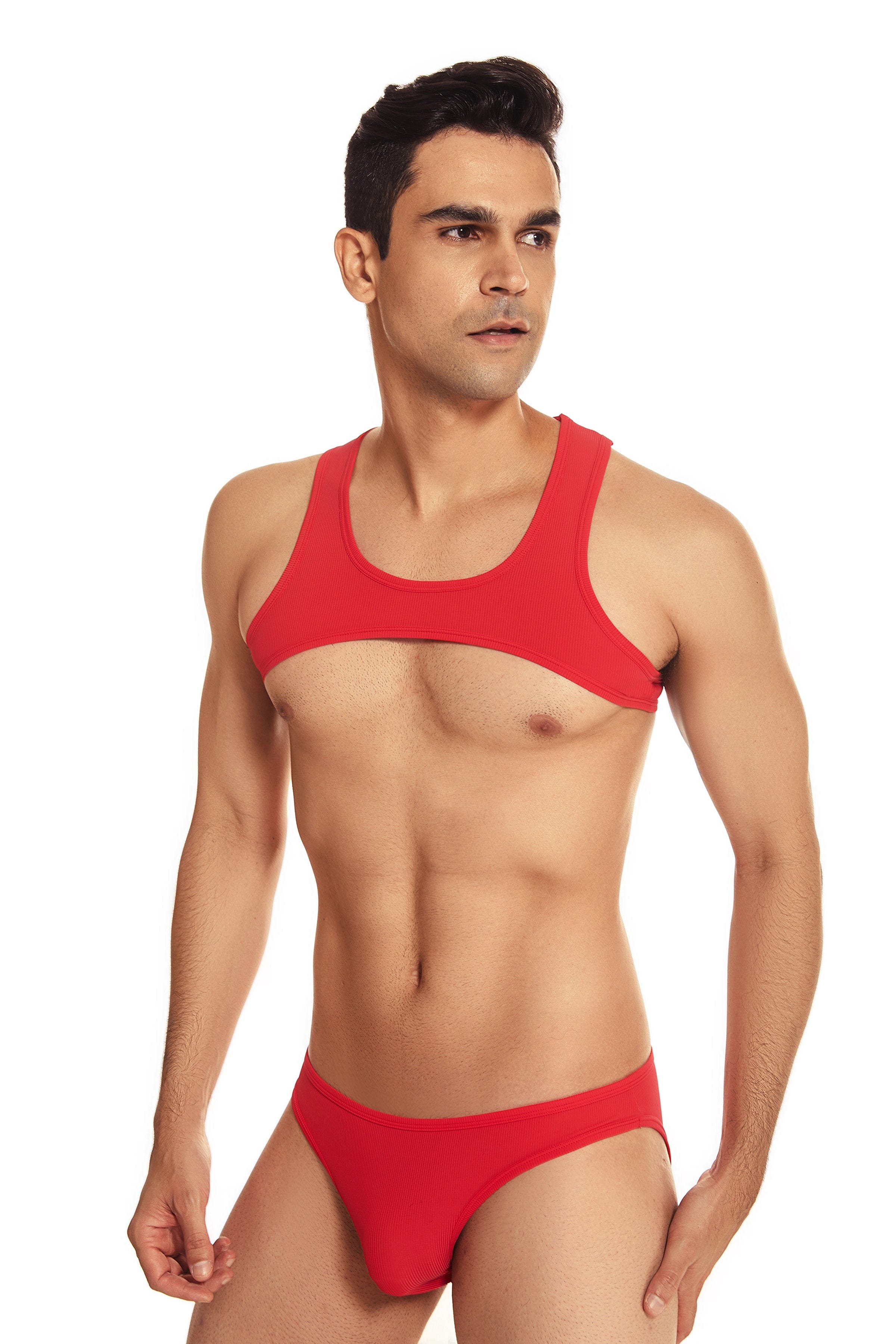 Get ready for your cover shot with this micro crop tank. It's light and flexible nylon blend will stretch to fit most sizes. and it's sexy ultra-high cut will show off even more skin. For guys who know exactly what they want.
