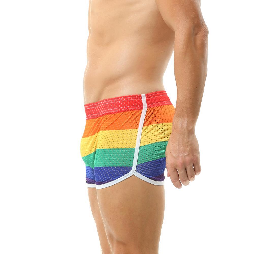 Show your pride in this outrageous rainbow Pride Jockstrap Skort. It is equipped with a bottom-center button that can this pair from shorts into a skirt for easy access. It even has a built-in jockstrap for a sexier look and supportive feel. Why not try something new today?