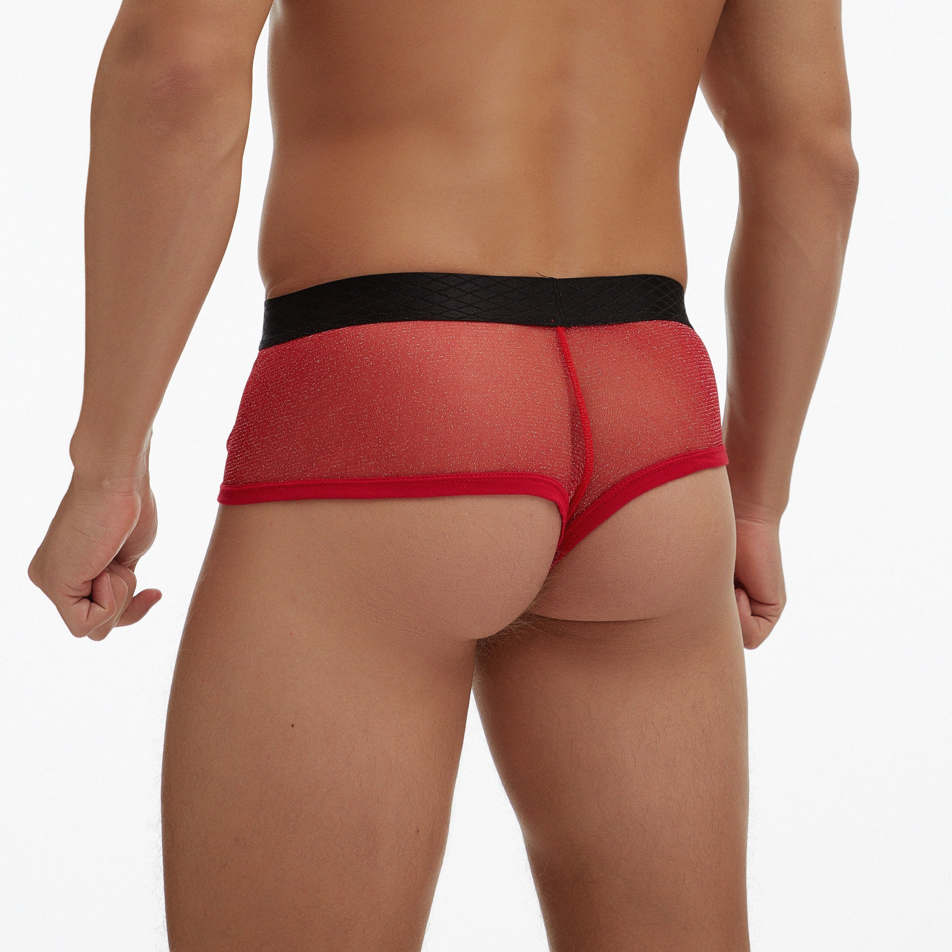 These scandalous cheeky briefs are eye-catching. sheer. and sexy! A cross between briefs and thongs. this pair covers just enough and will even has a convex pouch to hold and enhance your package. They will really help show off your best assets between the sheets. in the locker room. or anywhere else you dare to rock this hot pair!