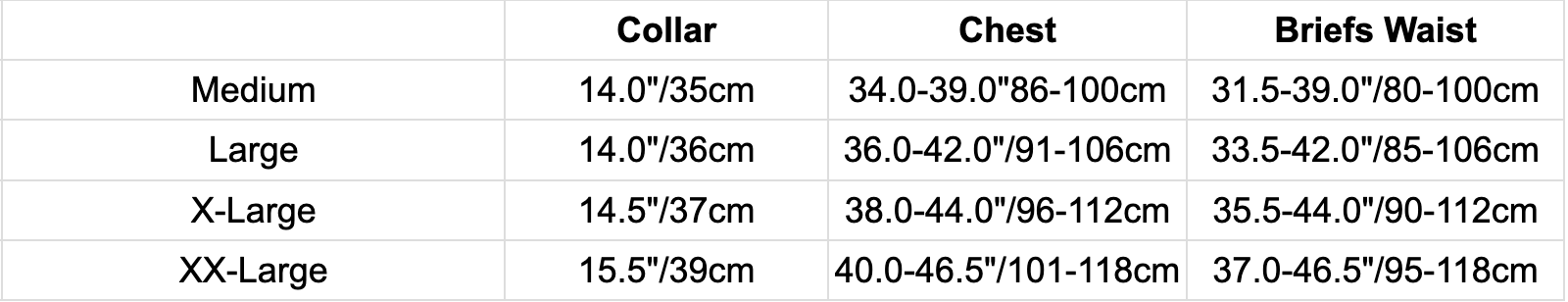 This product has a tight sizing. For a more accurate fit. please use the measurements provided and not the letter sizes. If in doubt. move one size up for a looser fit.