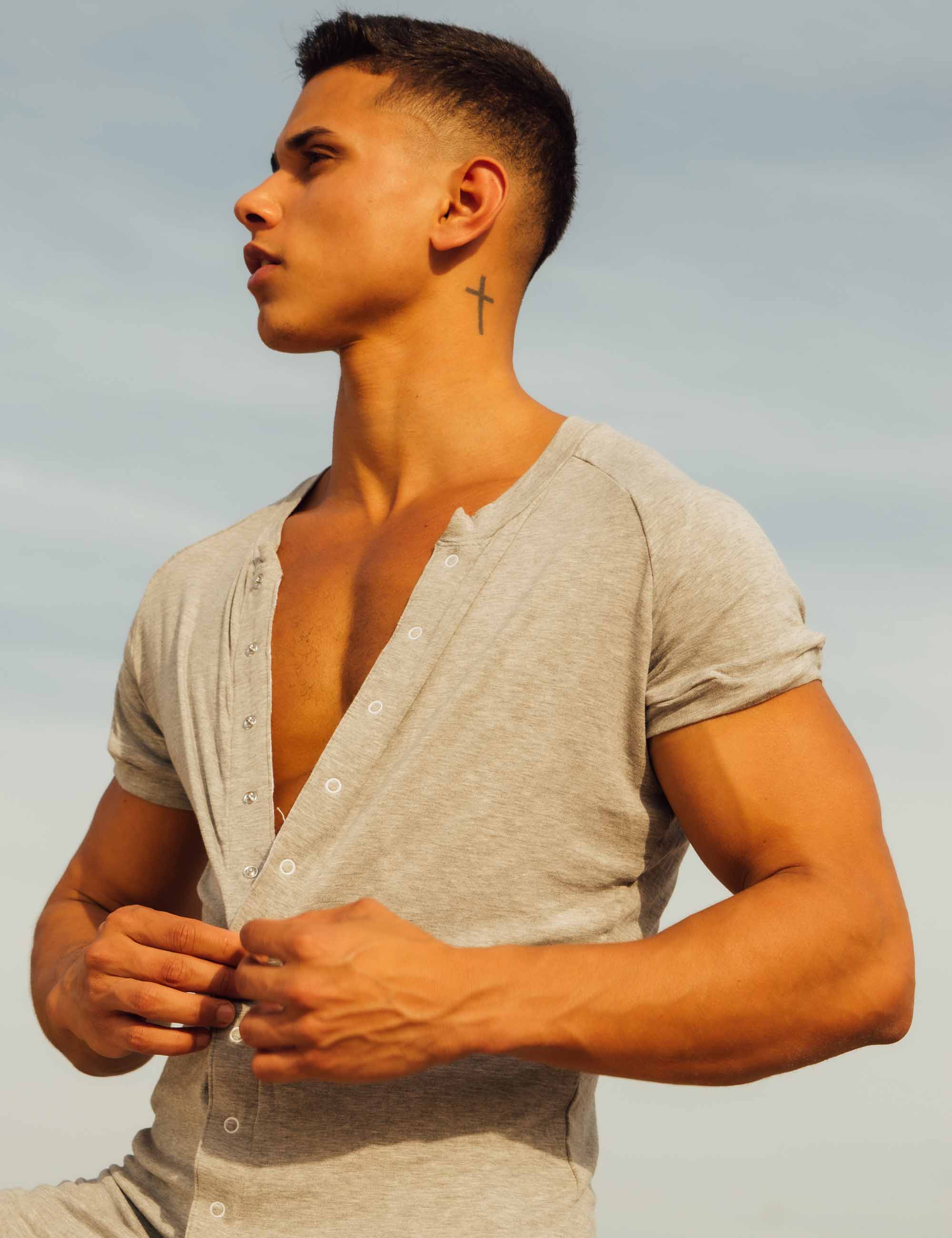 Model in size (L): Height 180cm. Weight 75kg