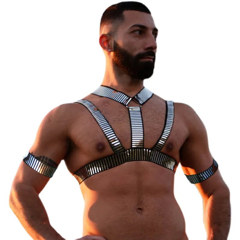 There is a lot going on here and we LOVE that! Some harnesses only showcase the your front. but this has got you chest. back and arms highlighted.? Enter like the greek god you are and have everyone wish they were standing next to you.