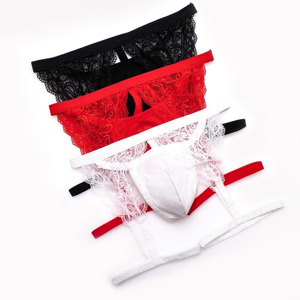 These Whisper Lace Garter G-Strings are perfect for guys who aren't afraid to push the limits! They a equipped with a bulging convex pouch to hold and enhance your package while the intricate lace garters strapped to the waist of this pair are sure to attract only the best attention.
